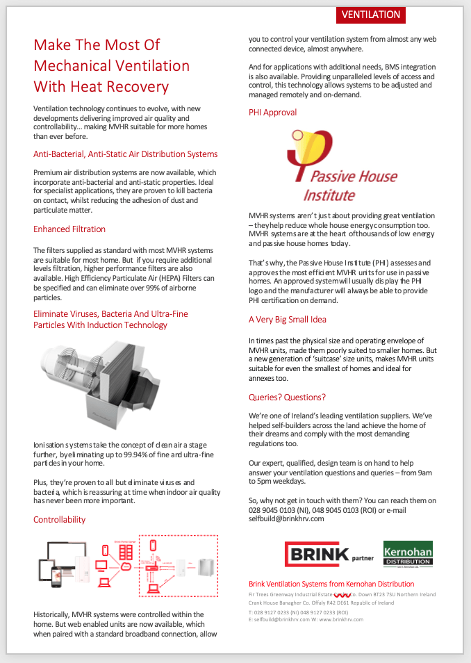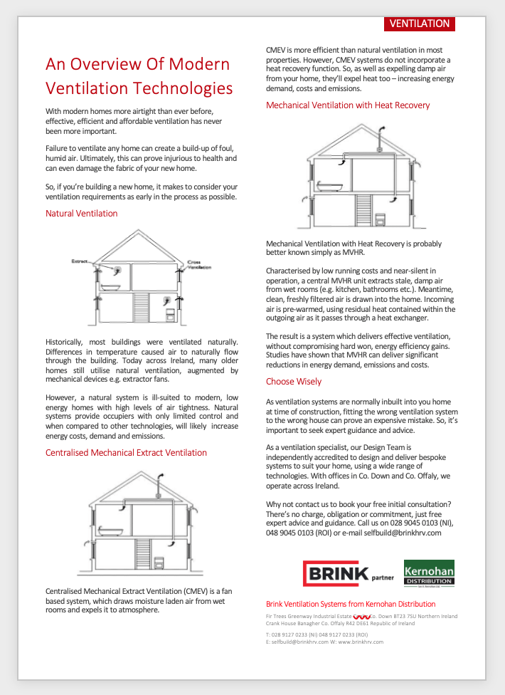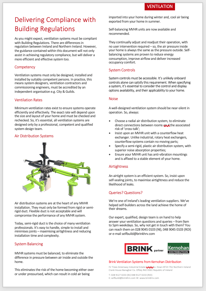 Brink is represented in Ireland and Northern Ireland by Kernohan Distribution - a leading distributor of Mechanical Ventilation with Heat Recovery, electrical, heating and plumbing products.